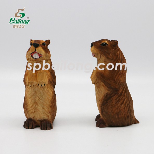 Solid wood carving hand painted small animal decoration
